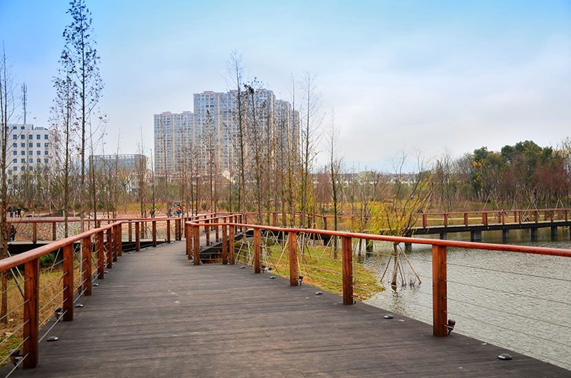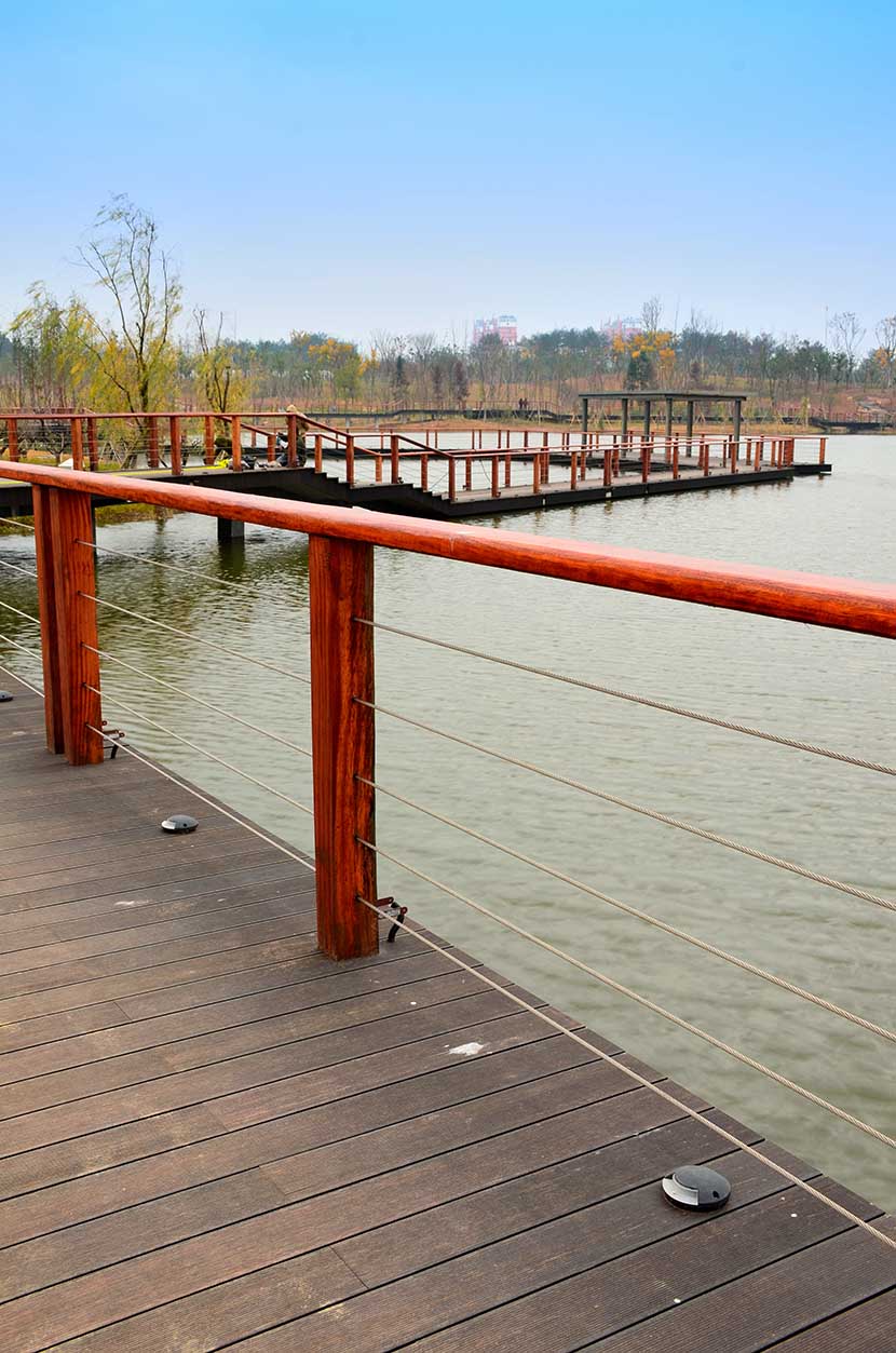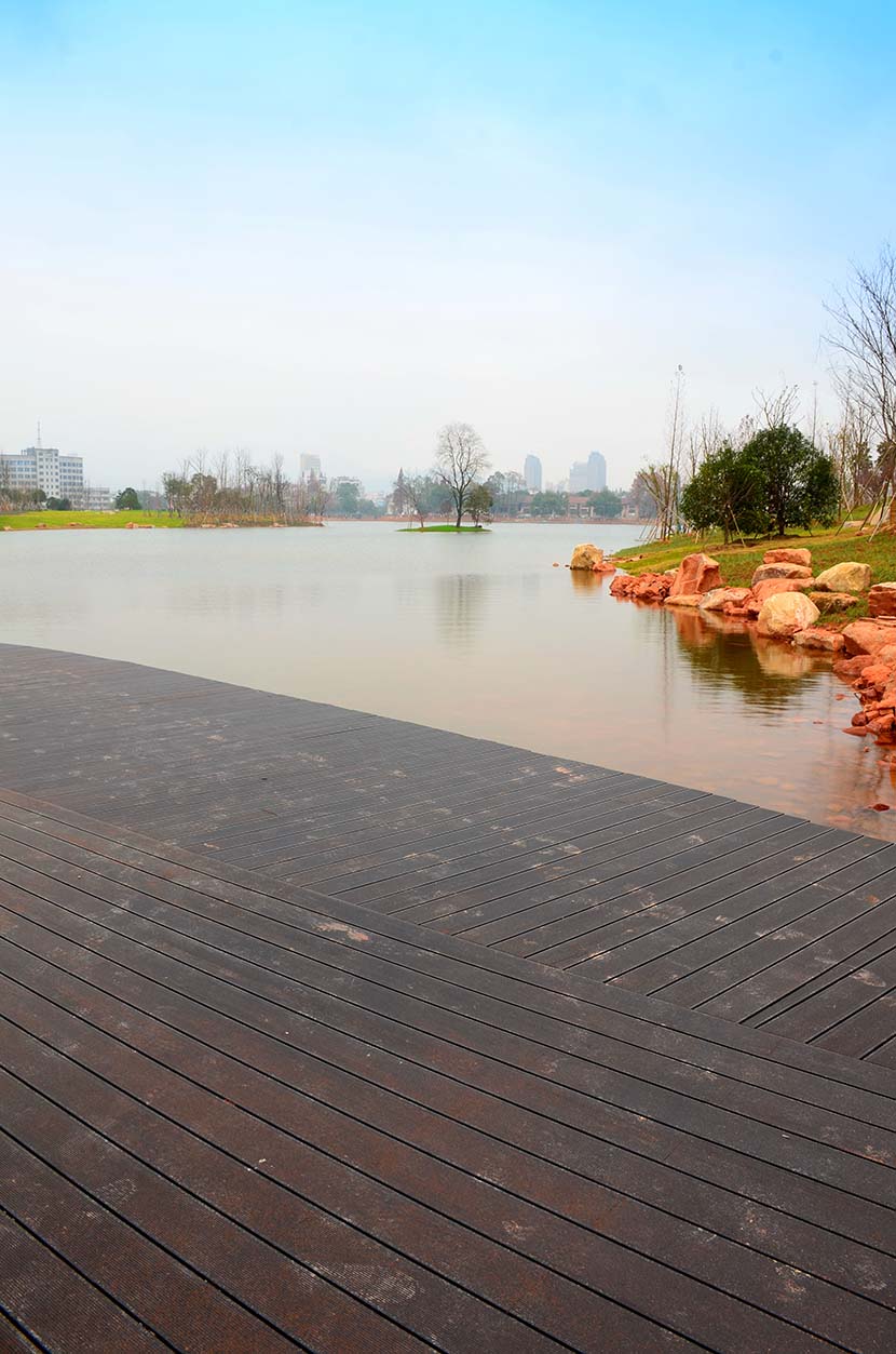 金獅湖公園位于浙江金華市北部的浦江縣,面積1265畝(水域面積368畝),總投資48億元。項(xiàng)目規(guī)劃為一環(huán)(金獅湖慢行游憩環(huán))、三片(人文體驗(yàn)景觀風(fēng)貌片、動(dòng)感都市景觀風(fēng)貌片、自然生態(tài)景觀風(fēng)貌片)及五區(qū)(工業(yè)遺存展示區(qū)、書香文創(chuàng)休閑區(qū)、康體活動(dòng)休閑區(qū)、濕地田園游覽區(qū)、濱湖廣場活力區(qū))。公園環(huán)湖景觀步道全部使用桃花江戶外防腐竹地板,打造金華的“小西湖”。