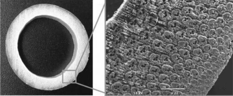 竹子是一種最典型天然的功能梯度材料。 從結(jié)構(gòu)上看,竹子是一種纖維增強復(fù)合材料,由兩種主要的組織組成: 作為增強作用的纖維(維管束) 和作為基體的薄壁細(xì)胞,這些纖維有很強的剛性,可以與鋼筋媲美。為了識別竹材莖稈中增強纖維的分布特性與竹稈抗彎剛度之間的關(guān)系,研究人員研究了竹材橫截面中的纖維分布。