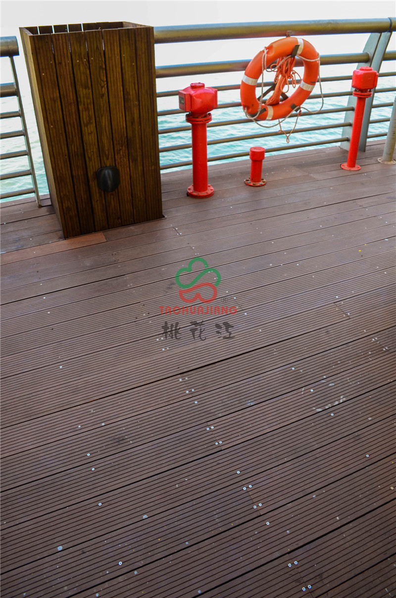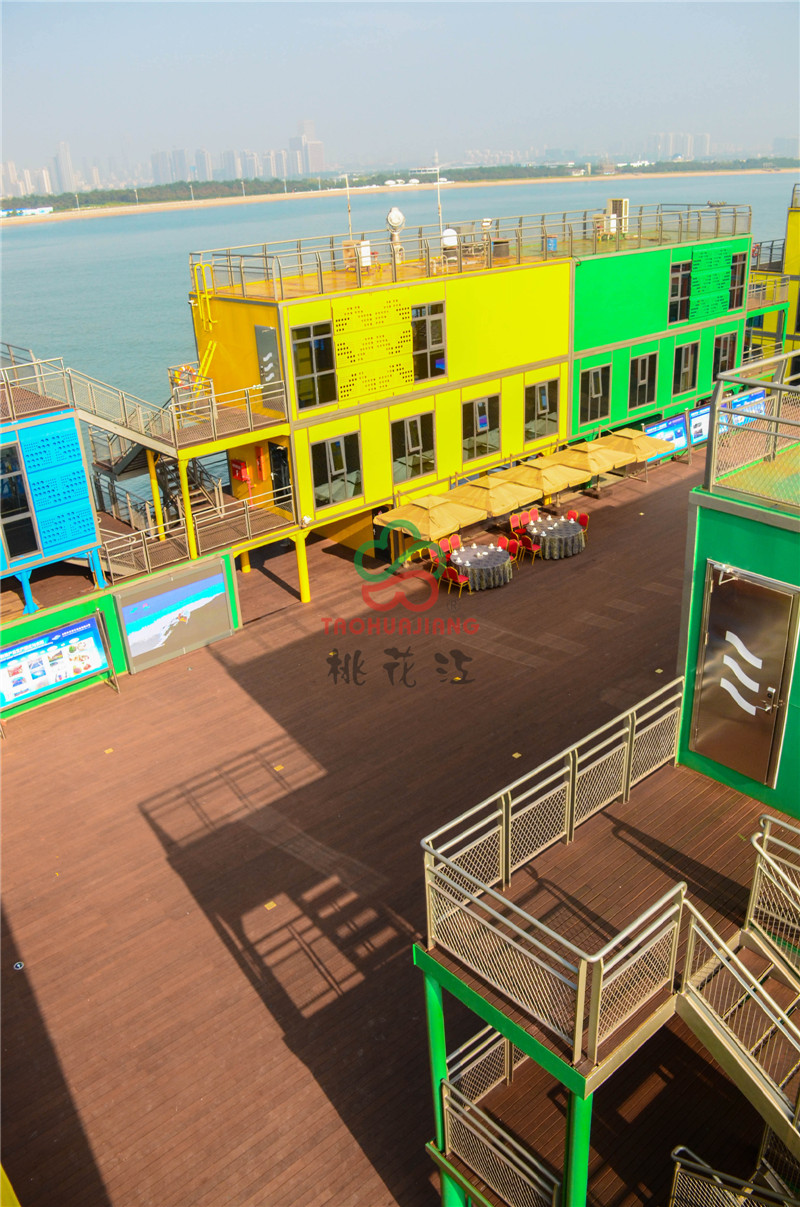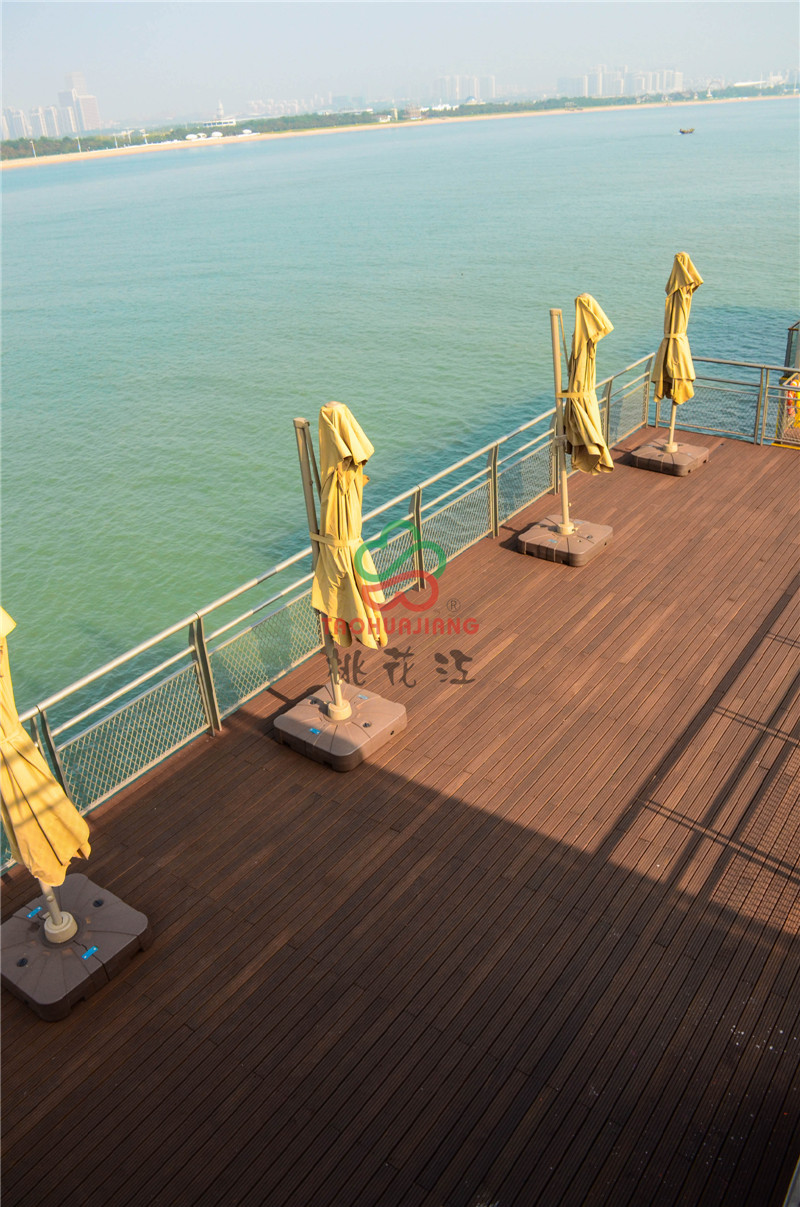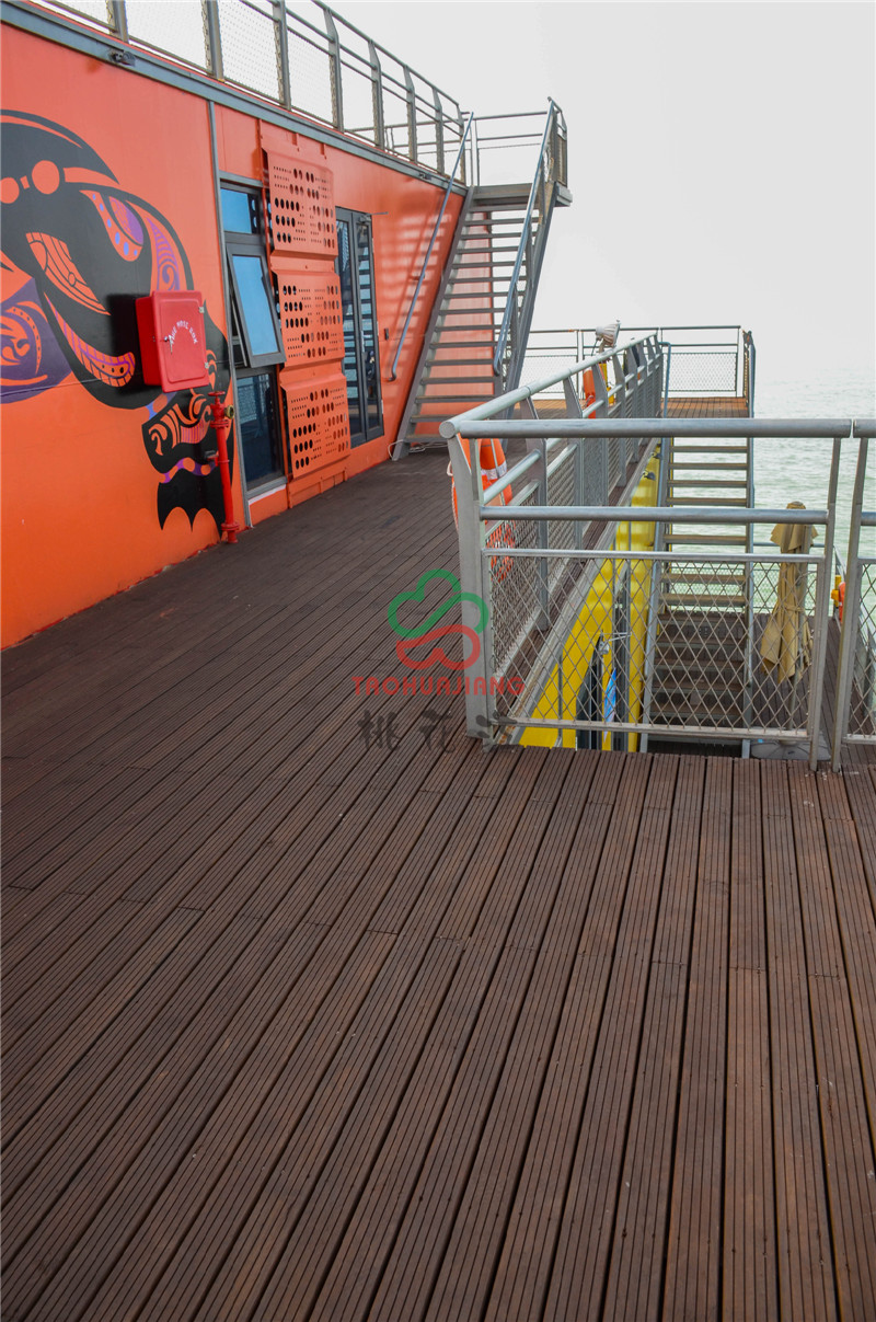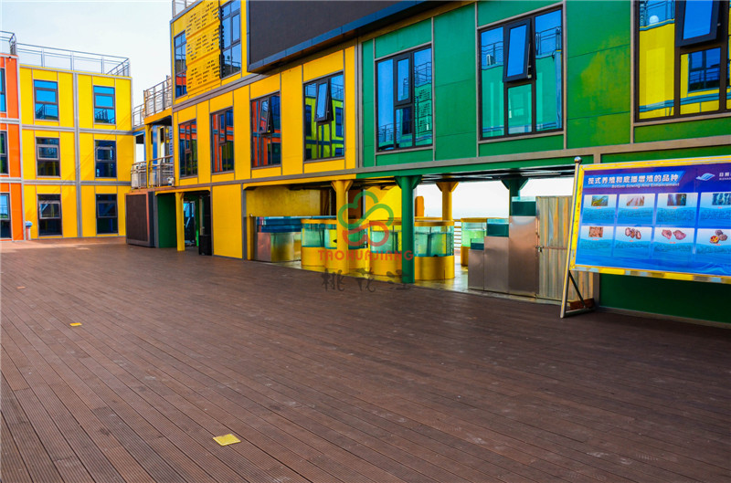 海上牧歌旅游休閑度假平臺(tái)是按照海上浮島理念設(shè)計(jì),以海洋文化、藍(lán)色暢想為主題,通過游、娛、食、宿、賞、釣、放、賽等多種形式,打造集休閑觀光、競(jìng)技垂釣、海洋采摘、食宿賞娛功能于一體的海上休閑旅游體驗(yàn)平臺(tái)。該項(xiàng)目的甲板上全部鋪設(shè)桃花江竹材科技的戶外防腐竹地板,桃花江的戶外防腐竹地板以其優(yōu)異的環(huán)保性、耐候性和穩(wěn)定性,即使在日曬雨淋的甲板上也不動(dòng)聲色,穩(wěn)定性強(qiáng),甲板上同時(shí)可容納上千人,深咖色的地板與五彩斑斕的建筑形成一幅絢麗的風(fēng)景,是人們休閑娛樂觀海的不錯(cuò)所在。