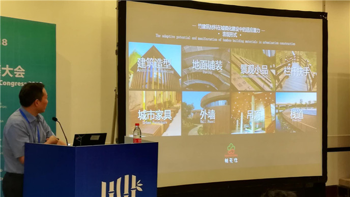 薛董以《竹建筑材料及其在城鎮(zhèn)化過程中的應用潛力》為題,圍繞中國工業(yè)化以來企業(yè)運用現代工藝技術及設備研發(fā)新的竹材產品,闡述在我國城鎮(zhèn)化建設過程中竹材新產品在室內外的運用以及未來的巨大潛力,結合豐富的案例展示了中國竹材產品的應用成果及竹材應用的發(fā)展趨勢。薛董的演講得到了來自世界各地的科研院所、高校、企業(yè)界的100多位代表的廣泛關注。